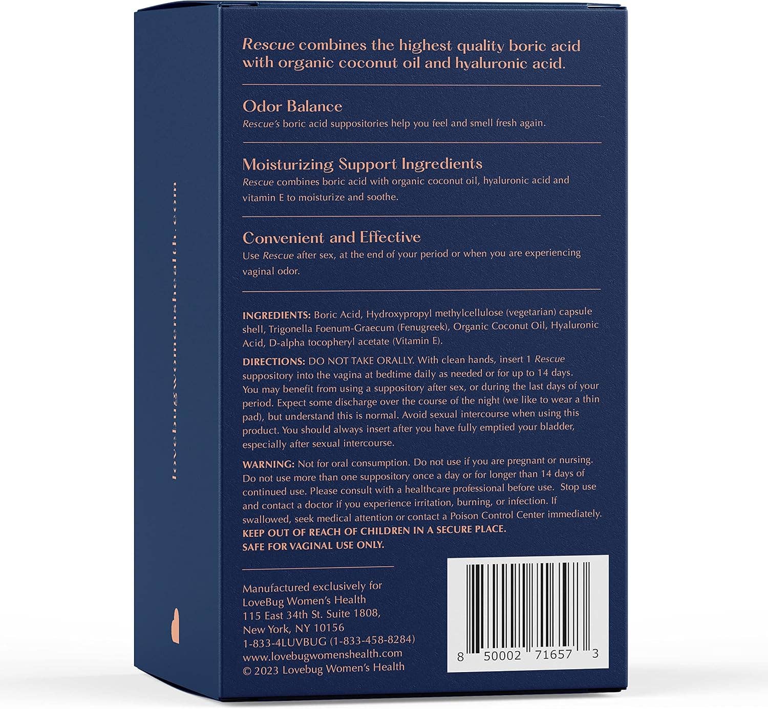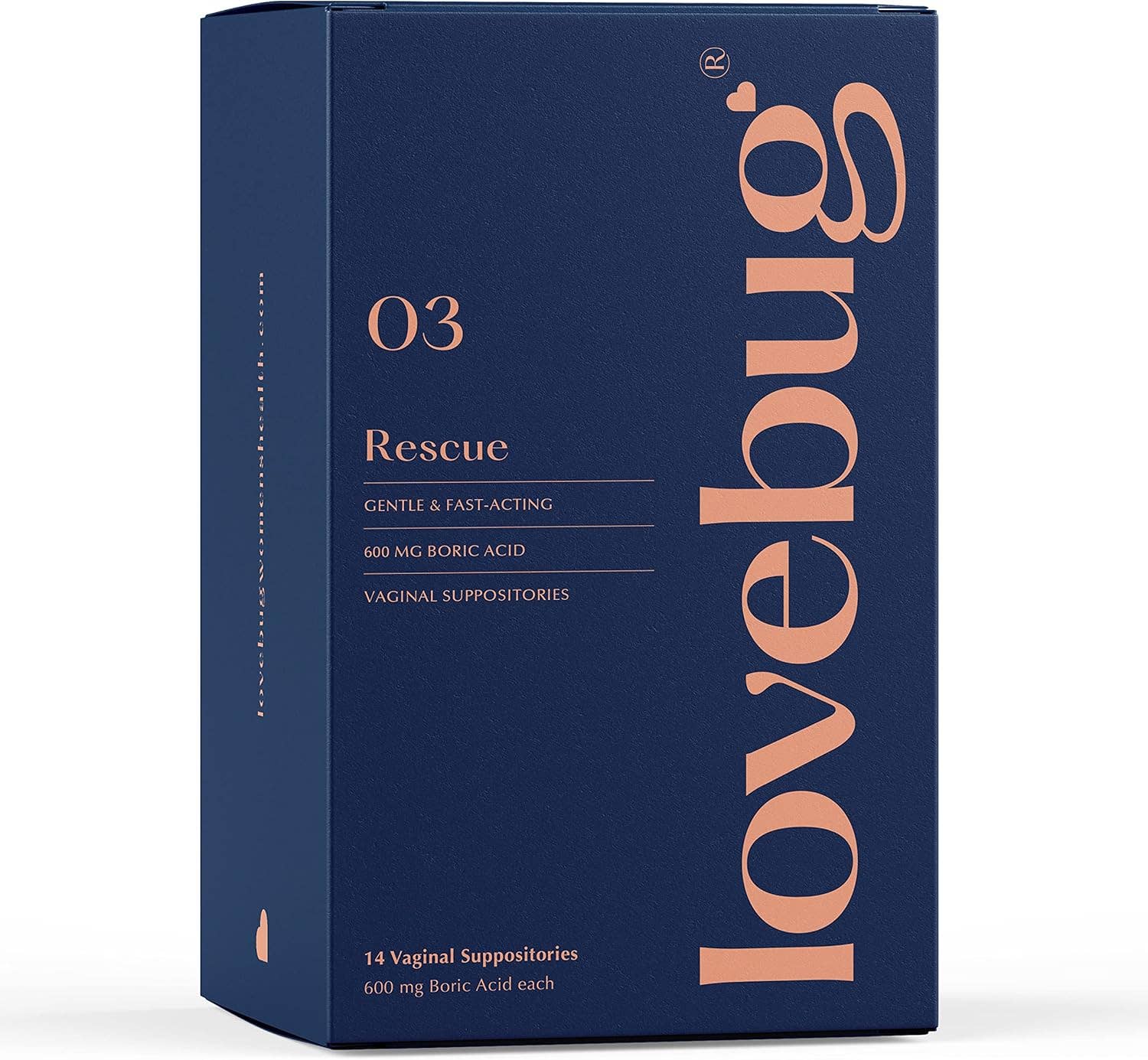 LoveBug Women’s Health Rescue are Boric Acid Vaginal Suppositories that offer a natural alternative to restoring vaginal pH balance, reducing yeast levels and combating odor, while supporting discomfort.